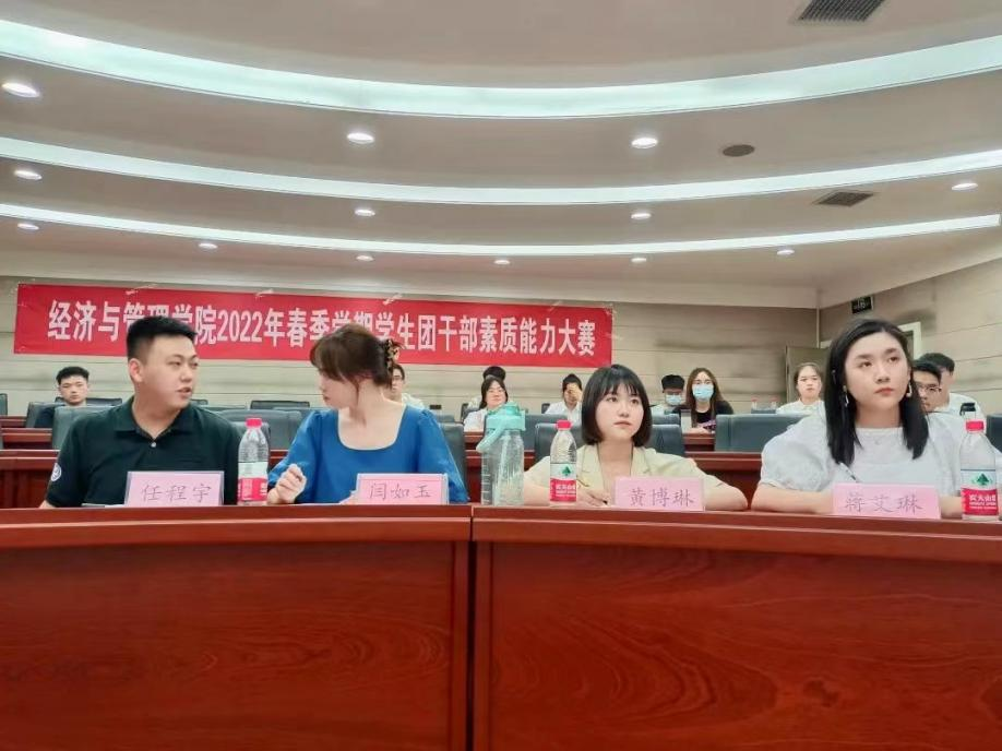 本次比赛以“喜迎二十大,永远跟党走,奋进新征程”为主题,引导广大团干部深入学习习近平新时代中国特色社会主义思想,全面贯彻落实中央党的群团工作会议精神和全国高校思想政治工作会议精神,迎接二十大,着力提升高校团干部思想政治工作的理论水平、专业素养和工作能力,思想内容丰富、语言表达切合实际、团课内容紧跟时事,展现了经管团干部永远跟党走的信念信心。史立凡获一等奖,袁怀堰、祝昭鹏获二等奖,刘蕊、马洁琳、田靖杰获三等奖。