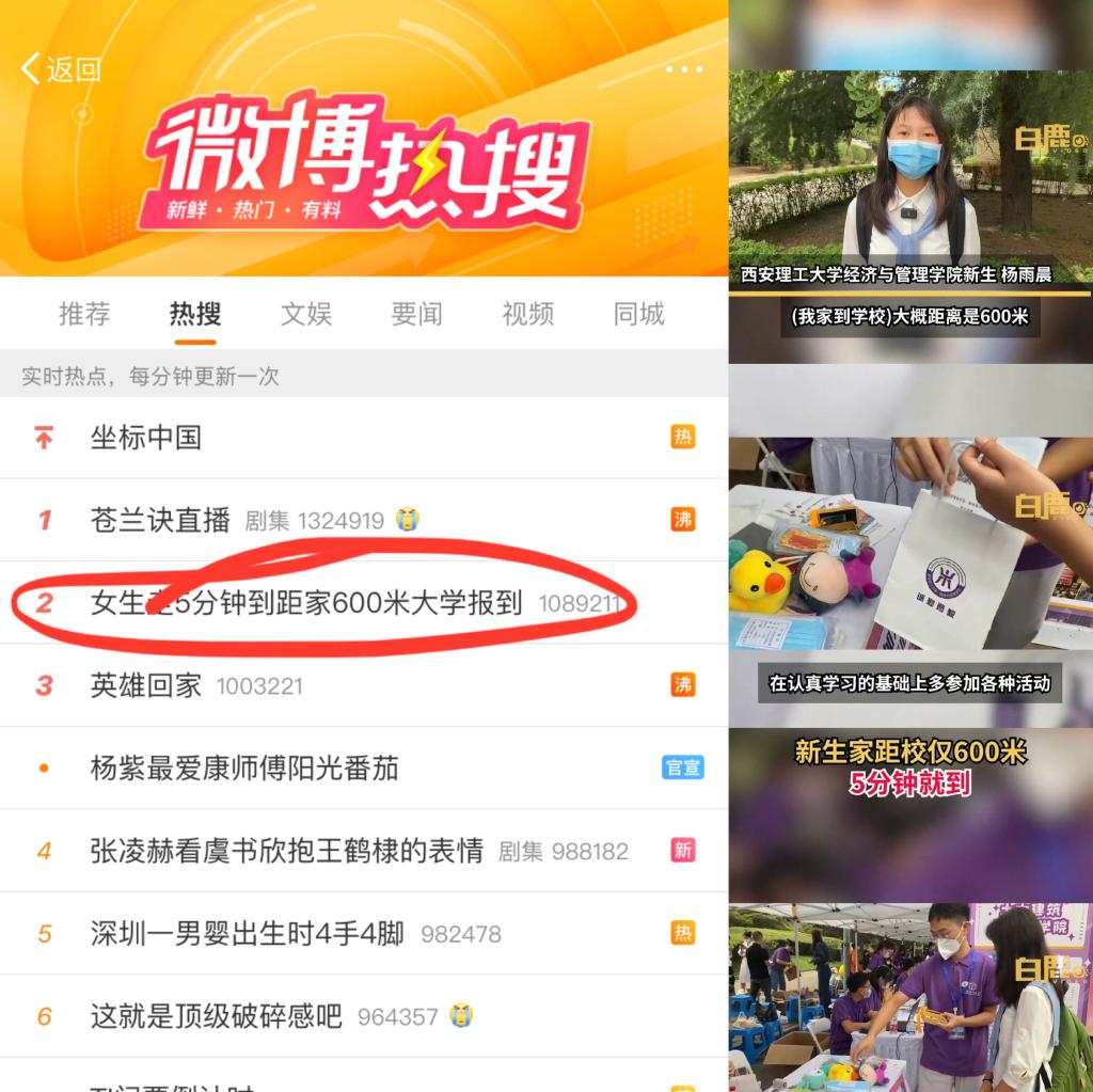 公司新生学子杨雨晨在记者采访中讲到,离家600米的公司让她很有归属感,她的故事在迎新当天冲上全国微博热搜榜第二名。那么亲爱的2022级新同学,在西理,你也会遇到耐心倾听你想法的老师,一群志同道合的小伙伴,几位温暖可爱的舍友,清晨早读时的一缕阳光,傍晚操场上被夕阳拉长的跑步身影......这些,都将是你在这里即将拥抱的“归属感”。