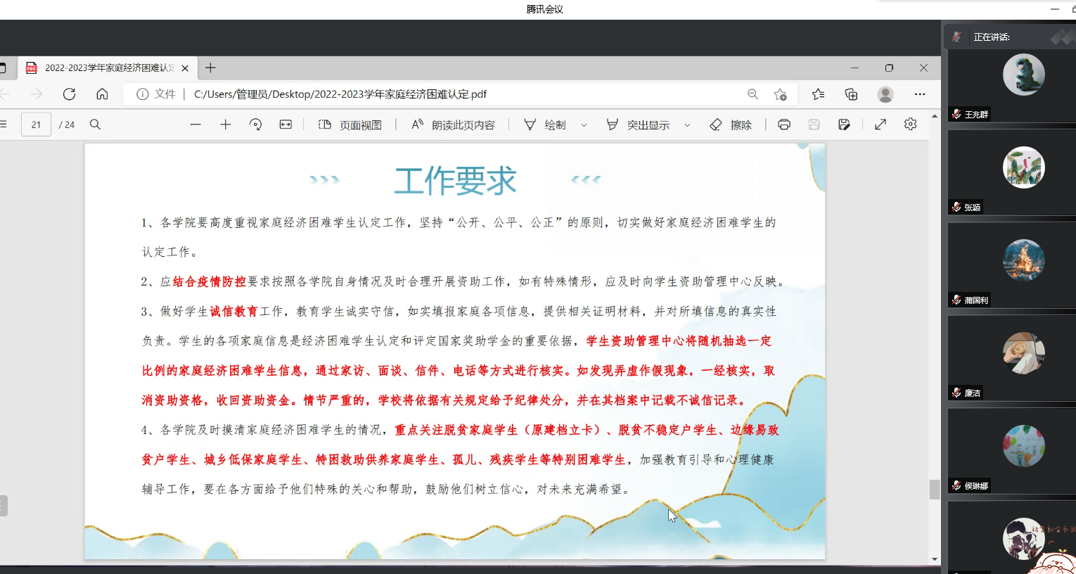 最后白华煜老师总结时强调,新生导师通过本次贫困认定过程要进一步了解本班员工家庭及个人情况,深入到员工中去,主动了解班级员工的学习生活情况、积极关注员工思想动态、家庭情况等;其他各年级导师疫情期间要关注重点员工,做好员工适应性管理工作、细化员工的培养管理、关注大四员工就业;引导员工构建自我职业规划并不断完善,提高员工培养质量,希望各位导师开拓工作思路,创新工作方法,使公司的本科生导师工作再上一个新的台阶。