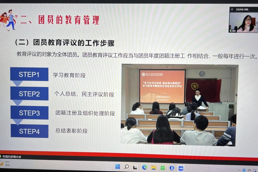 开班仪式伊始,全体团员共唱团歌并重温入团誓词。第三十期团课优秀学员代表经济211班马洁琳和第三十一期新学员代表管224班团支书分别进行发言。闫如玉从明确培训意义,发挥团课培训主渠道作用对本期学员提出学习培训要求。团课第一讲邀请到校团委荆霄老师作为主讲人,围绕“争做新时代优秀共青团员”主题,通过团的基本认识、团员的教育管理和团支部的职能,详细讲述共青团成立的背景、建团的思想与组织基础,通过厘清“入党还需要缴纳团费”“青年大学习的意义”“学习成绩与入党的关系”等问题,向青年团员们讲明团员教育管理相关制度,深刻理解共青团职能和长远的工作任务,找准自我位置,积极努力做一名优秀的共青团员。
