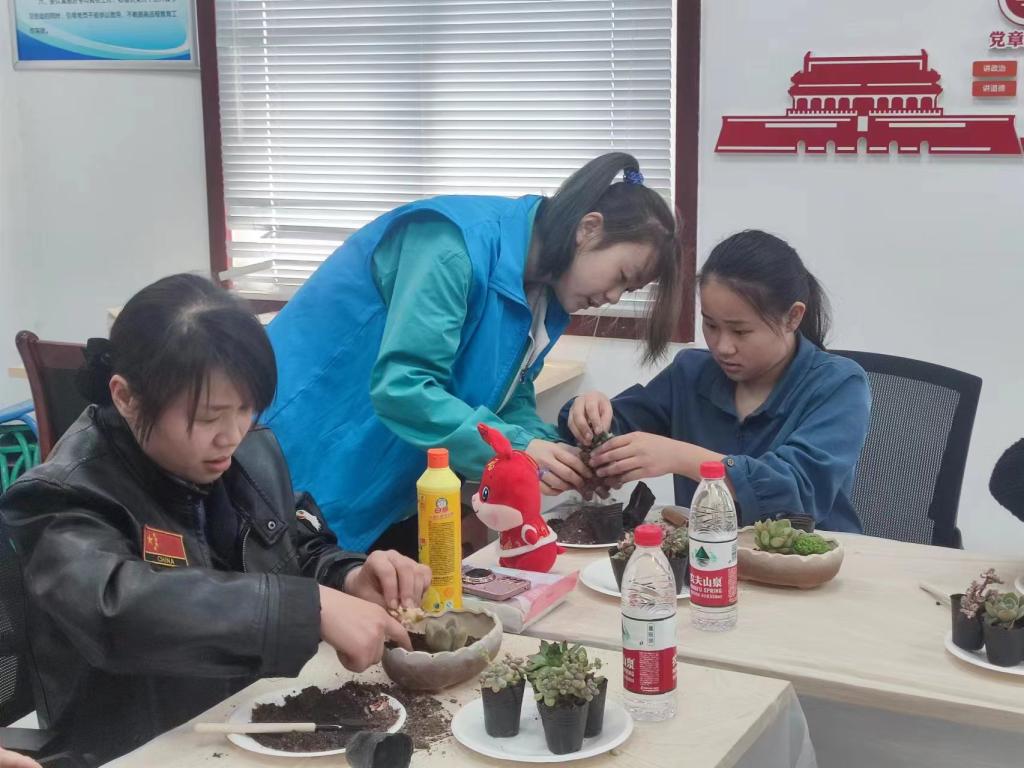 此次志愿者服务活动以感悟美好时节、凝聚巾帼力量为主题,志愿者负责活动的组织和开展,纸坊南村30余名社区女性与志愿者共同参与。活动开始,由当地村书记致辞,接着社区的村民们和五名员工一起欣赏了由纸坊南村社区村民带来的表演,有舞蹈《欢庆日子》、女声独唱《我爱你中国》、舞蹈《老两口学毛选》等,将活动现场氛围推向高潮。随后,大家跟随主持人李维同学一起完成了几场妇女健康知识有奖问答,韩滨帆同学带领大家进入多肉DIY种植环节。