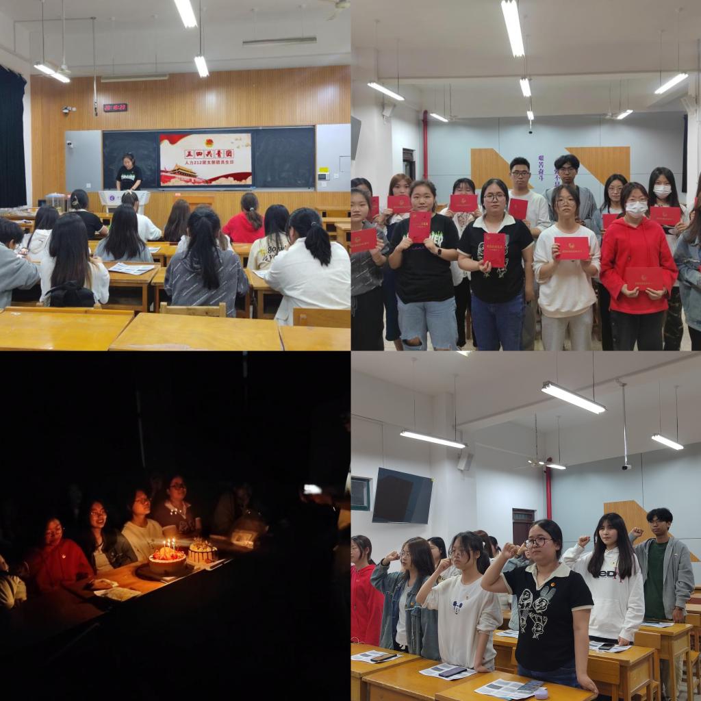 此次活动分七个部分展开:团员政治生日主题介绍、宣讲共青团历史、重温入团誓词、齐唱团歌、颁发团员政治生日卡、优秀共青团员演讲以及团员共贺生日。活动伊始,团支部副书记王号从中国共产主义青年团简介、共青团成立的历史、团员的权利义务等六个方面向同学们展开宣讲。随后,团支书周姊洋向全体团员介绍团员政治生日。“每个人都有两个生日,一个是出生日,一个是‘政治生日’。只要被团支部大会决议通过后,同学们就有了新的政治面貌——共青团员,团员的政治生命也随之开启,也就拥有了自己的政治生日。”周姊洋向团员们颁发团员政治生日纪念卡,公司优秀共青团员陈林霞向全体团员做演讲。最后,全体团员面对团旗庄严宣誓,一时间,入团誓词字字句句响彻在整个教室中,团员们更是在共唱团歌环节中重温了当时的入团初心。