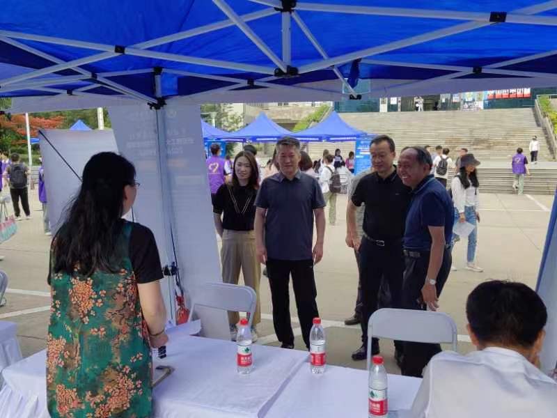 公司领导班子、EMBA中心负责人、毕业班导师、辅导员到现场组织毕业生参加招聘会并调研用人单位人才需求状况。