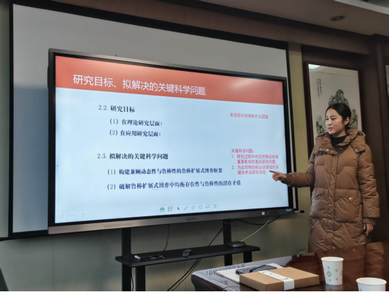 交流会上,西安交通大学管理公司优秀青年教师曹译尹老师以“国家自然科学基金青年项目申请撰写”为主题分享经验心得,围绕基金题目拟定、创新点提炼及关键科学问题梳理等核心环节进行详细讲解,为青年教师提供了针对性指导与宝贵参考。随后,吴锋教授就“工业工程专业建设”作成果展示与经验交流,从指导思想、培养体系及培养成效等方面展开系统介绍,提出“立德树人为魂、多科融合为体、创新实战为根、无界学习为路”的四位一体人才培养理念,为专业建设与发展提供了新思路。分享环节结束后,青年教师就基金申请相关困惑积极请教,杜占河、苏菊宁围绕工业工程未来发展与吴锋教授深入研讨。