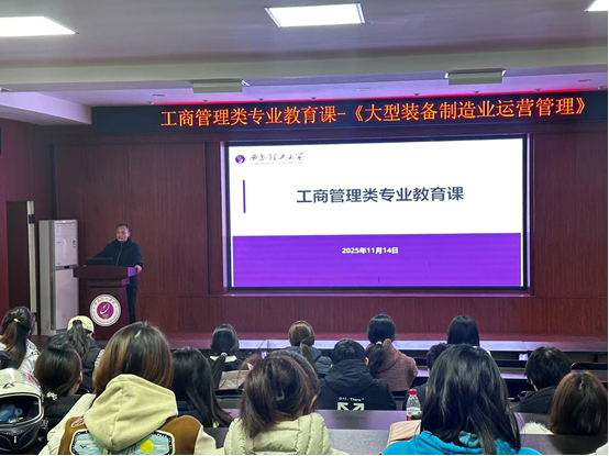 2025年11月14日,伟德国际1946工商管理系在人文公司模拟法庭举办专业教育课,特邀陕西重型汽车有限公司汽车工程研究院高级工程师、高级业务经理郝少锋讲授《大型装备制造业运营管理》,工商管理类专业大一、工商管理专业大三100余名员工参加了此次讲座。