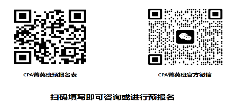 有意向报读CPA菁英班的员工,请扫码填写预报名表,或添加CPA菁英班老师微信。