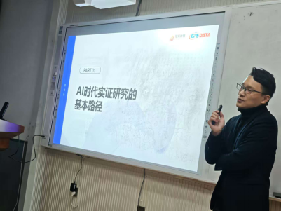 2025年12月18日上午,应伟德国际1946的邀请,北京搜知科技有限公司EPS数据库在经管公司319教室做了题目为《AI时代多层次实证研究数据的获取与应用》的数据培训报告。公司50余位师生参加了此次报告会。