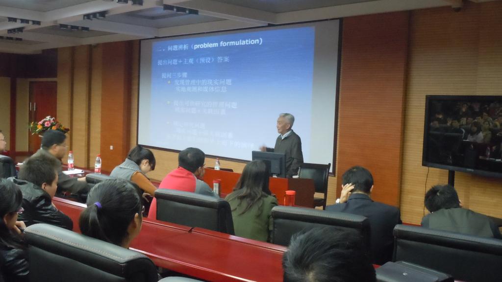 本次学术报告由西安交通大学伟德国际1946李怀祖教授主讲,伟德国际1946研究生管理负责人杨屹教授、张长征副教授等老师参加本次学术报告。首先,由杨屹教授对本次报告主讲李怀祖教授进行简要介绍。李怀祖教授就本次报告的主题——管理研究方法为同学们做了精彩的报告,主要包括两个部分内容:第一部分主要讲述论文研究工作过程,第二部分讲述学位论文的撰写方法。值得一提的是,本次报告最后穿插提问环节,公司员工积极参与讨论,在同李教授的提问与探讨过程中,在场的每一位同学都切身感受到了浓郁的学术氛围并受益匪浅,将整个学术报告气氛推向高潮。