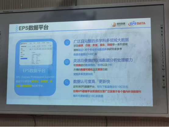 2025年4月24日上午,应伟德国际1946的邀请,北京搜知科技有限公司EPS数据库在经管公司319教室做了题目为《人工智能背景下数值型数据的价值和应用路径》的数据培训报告。公司50余位师生参加了此次报告会。